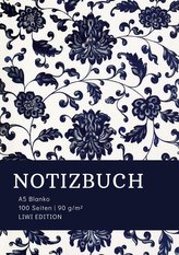Notizbuch A5 Blanko - 100 Seiten 90g/m² - Soft Cover floral blau
