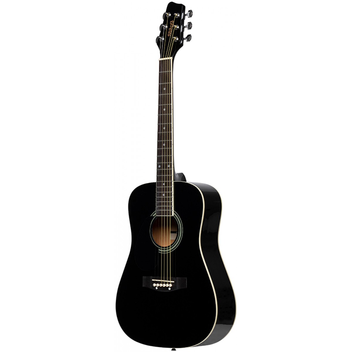 Akustická kytara 3/4 typu Dreadnought pro leváky. Vrchní deska lípa, spodní deska a luby lípa, krk nato, menzura 590 mm, nultý pražec 43 mm, hmatník a kobylka topol, mechanika otevřená niklovaná. Barva černá lesklá.