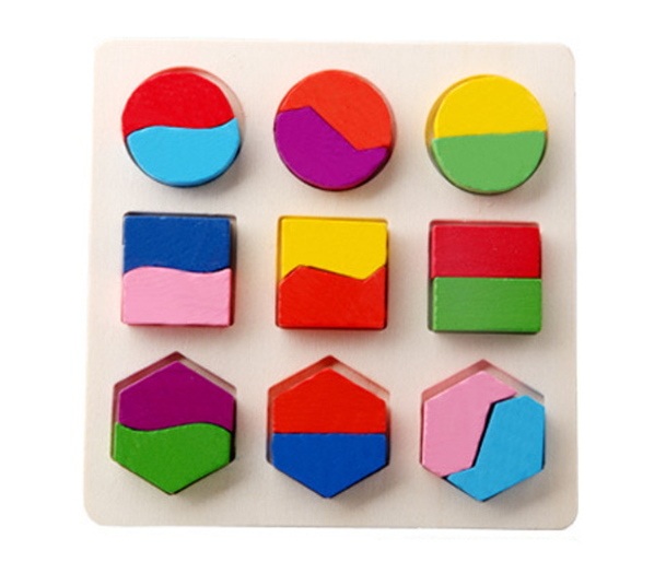 Zabawka drewniana UKŁADANKA edukacyjna kształty 15x15 cmDrewniana układanka edukacyjna składająca się z kolorowych elementów w kształcie kół, kwadratów i sześciokątów, podzielonych na połówki o różnych kolorach. Zadaniem dziecka jest dopasowanie połówek do siebie i umieszczenie ich w odpowiednich...